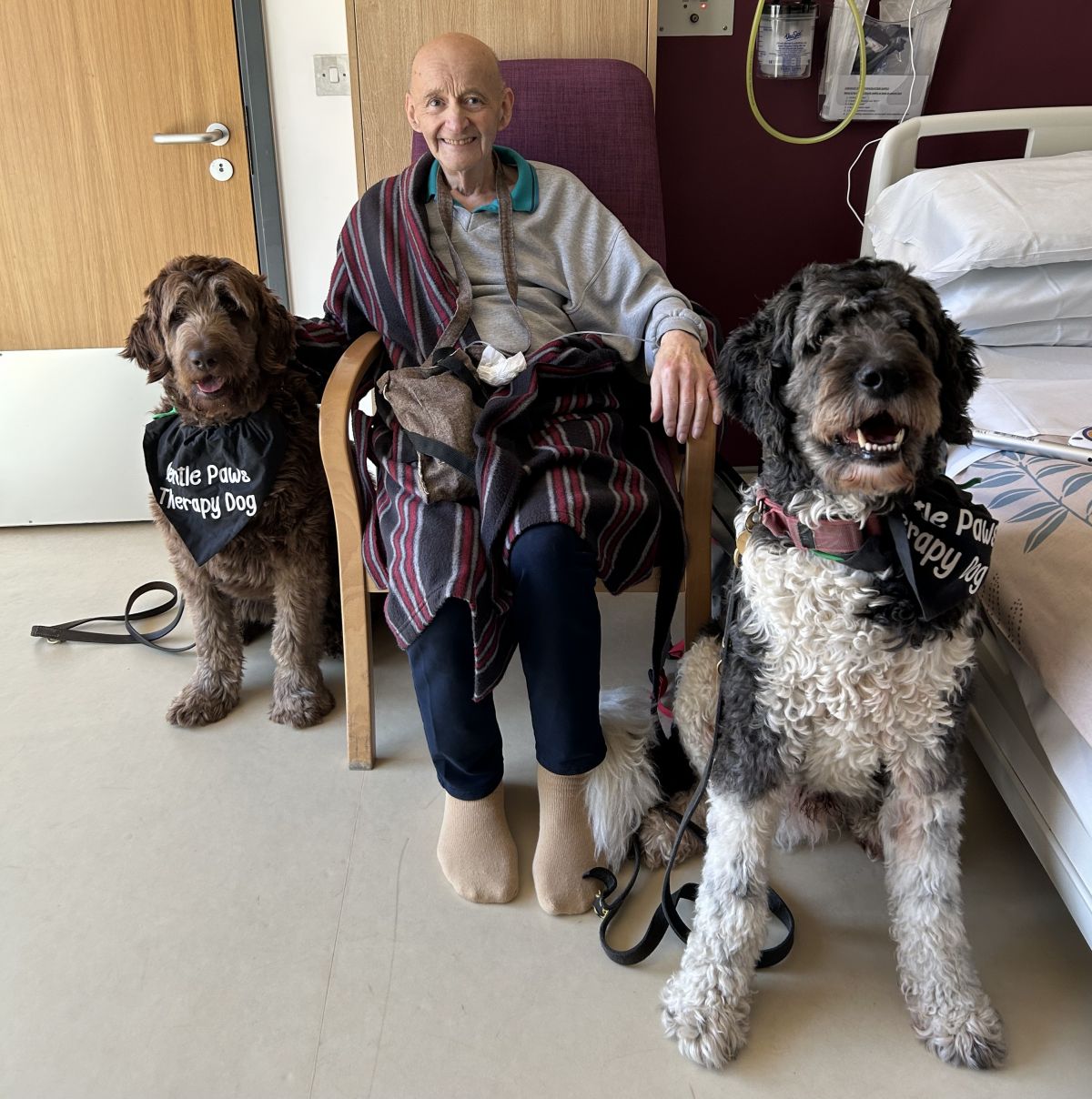 The Kirkwood, every day is about making a difference for people facing life’s most difficult challenges. For 80 year old Dewsbury resident Allan Holmes, the care he has received has not only helped him feel stronger but also brought unexpected moments of joy, thanks in part to a special visit from Gentle Paws Therapy Dogs and their four-legged friends, Ernie and Albert, who filled the hospice with smiles and comfort.