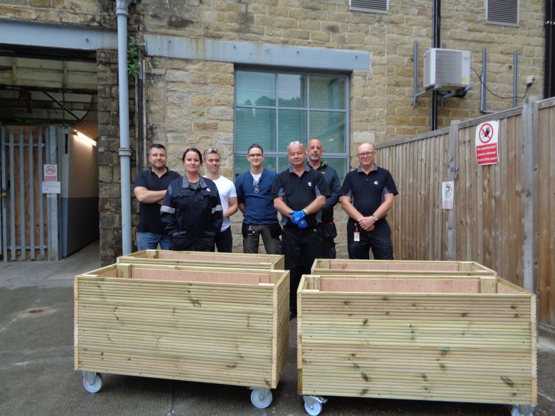 Cummins Turbo Technologies donate nine hand-crafted garden planters for use by patients in Kirkwood Hospice’s therapeutic ‘Grow Group’.