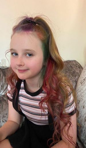 Esme, after adding all colours of the rainbow to her hair in aid of Kirkwood.