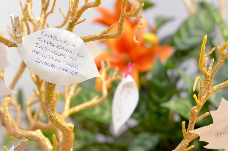 At Kirkwood, we are aware that ‘dignity’ means different things to different people, so we asked people to drop in for an afternoon tea with a twist. As part of our Digni-Tea event, we asked people to let us know what ‘dignity’ means to them by hanging a personal note on our tree.
