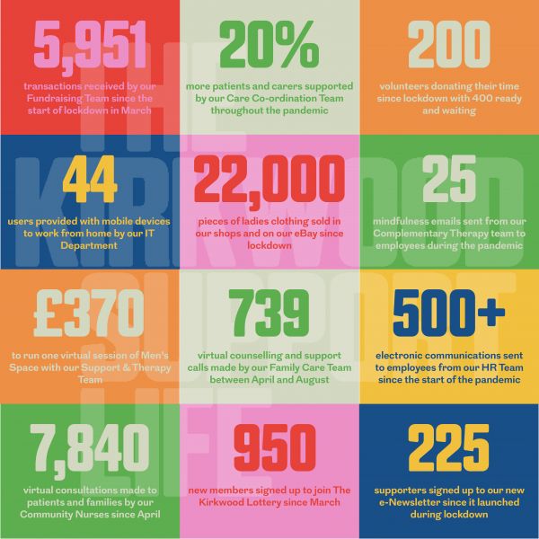 But, we couldn't do this without everyone that makes up The Kirkwood movement. From our employees and volunteers, patients, carers and family members, to our supporters and followers on social media, it takes thousands of people just like you to help us support life for anyone affected by a life limiting illness in Kirklees. We have seen some amazing support over the last few months, from members of our community finding new ways to safely fundraise and donations from local businesses, to our social media followers taking the time to read, like and share our stories with their connections. We couldn't do it without you!