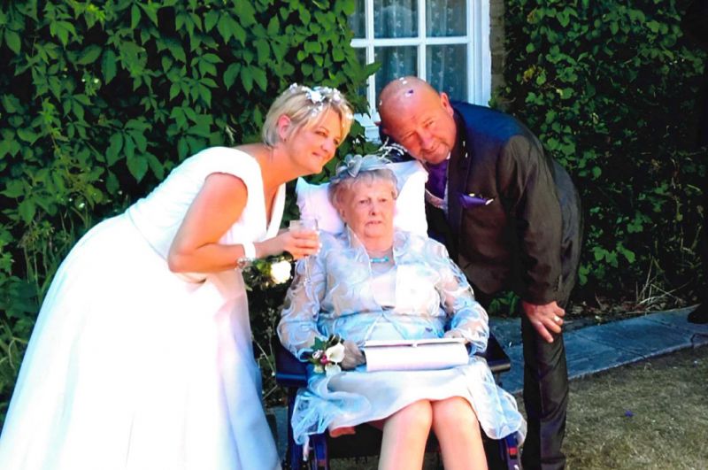 “A nurse volunteered to help take Mum to the venue on the day, and there were two different types of wheelchair to make sure that she was comfortable. I was looking out of the hotel window when she arrived. I saw her wave up to me and I knew she’d made it. Everybody said how brave and how beautiful she looked.