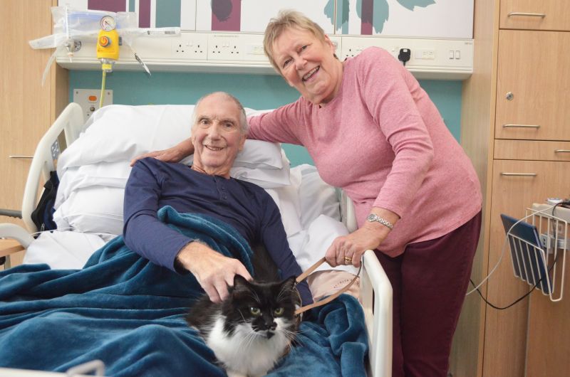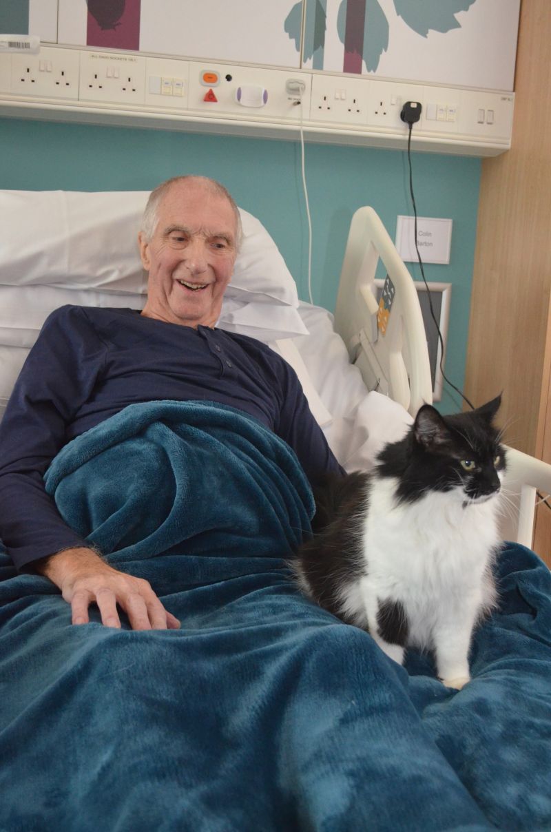 Throughout his illness living with COPD, Colin has had lots of special visitors including his two sons, Richard and Stephen, and three grandchildren, Caitlin, Xander and Ewin. However today marks the first visit from Gerry, the family’s 15-year-old feline friend.