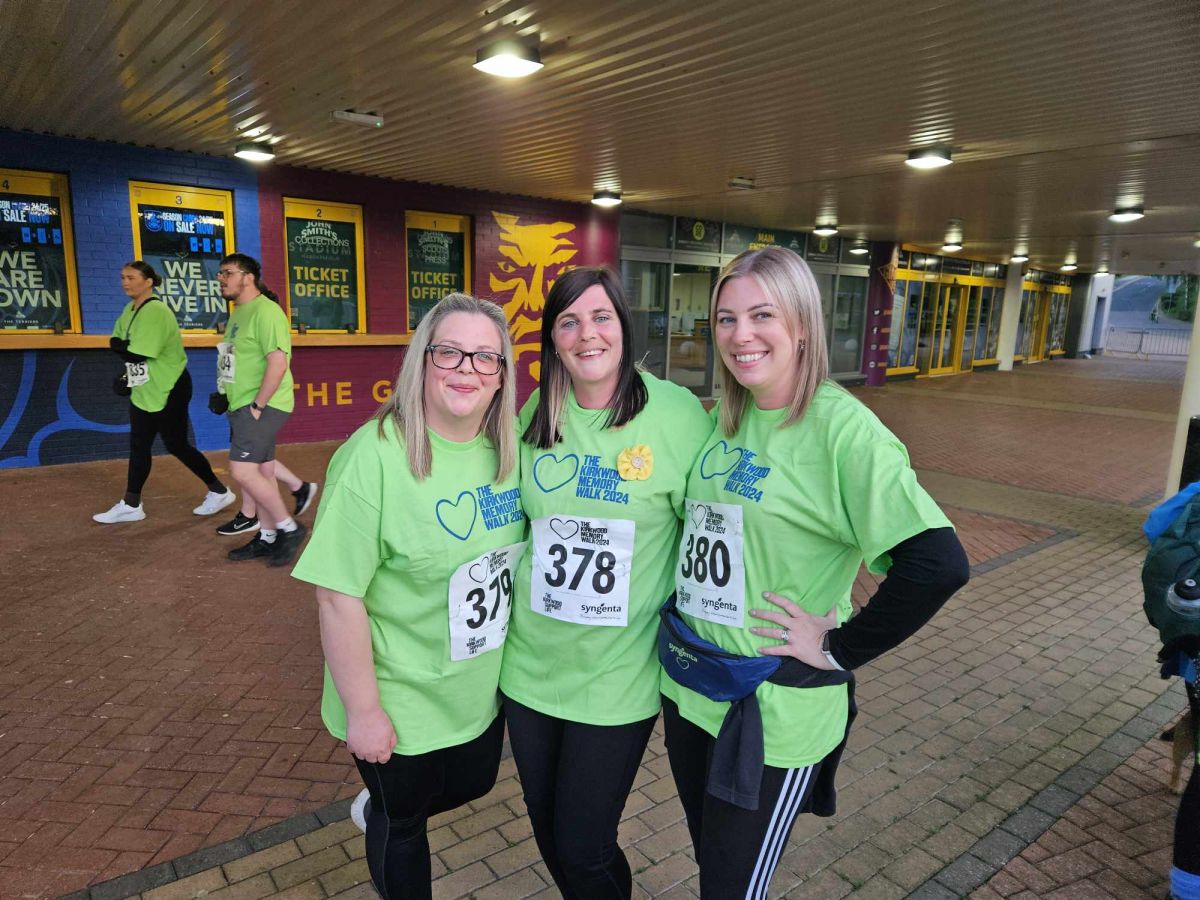 Walkers on the night either followed a 6 or 10 mile route, starting and ending at the John Smith’s Stadium, the home of Rugby League side Huddersfield Giants and football club Huddersfield Town. As they walked the route in their green t-shirts each person had the opportunity to walk in memory of someone special.