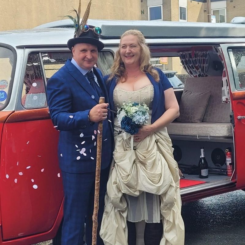 Elaine and Chris on their wedding day earlier this year