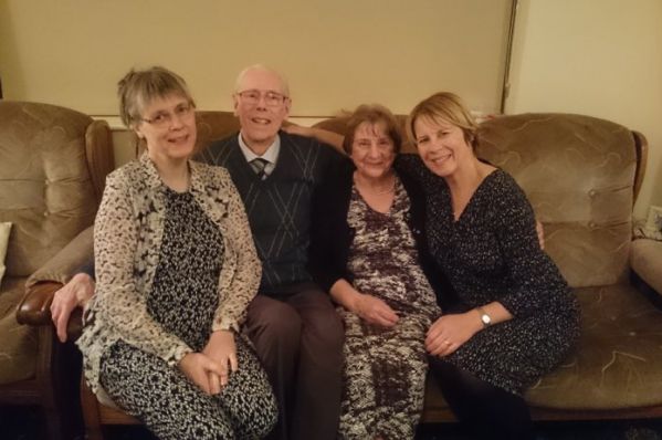 John and Margaret with their two daughters, Dawn and Beverly, on their Diamond wedding anniversary in February 2017